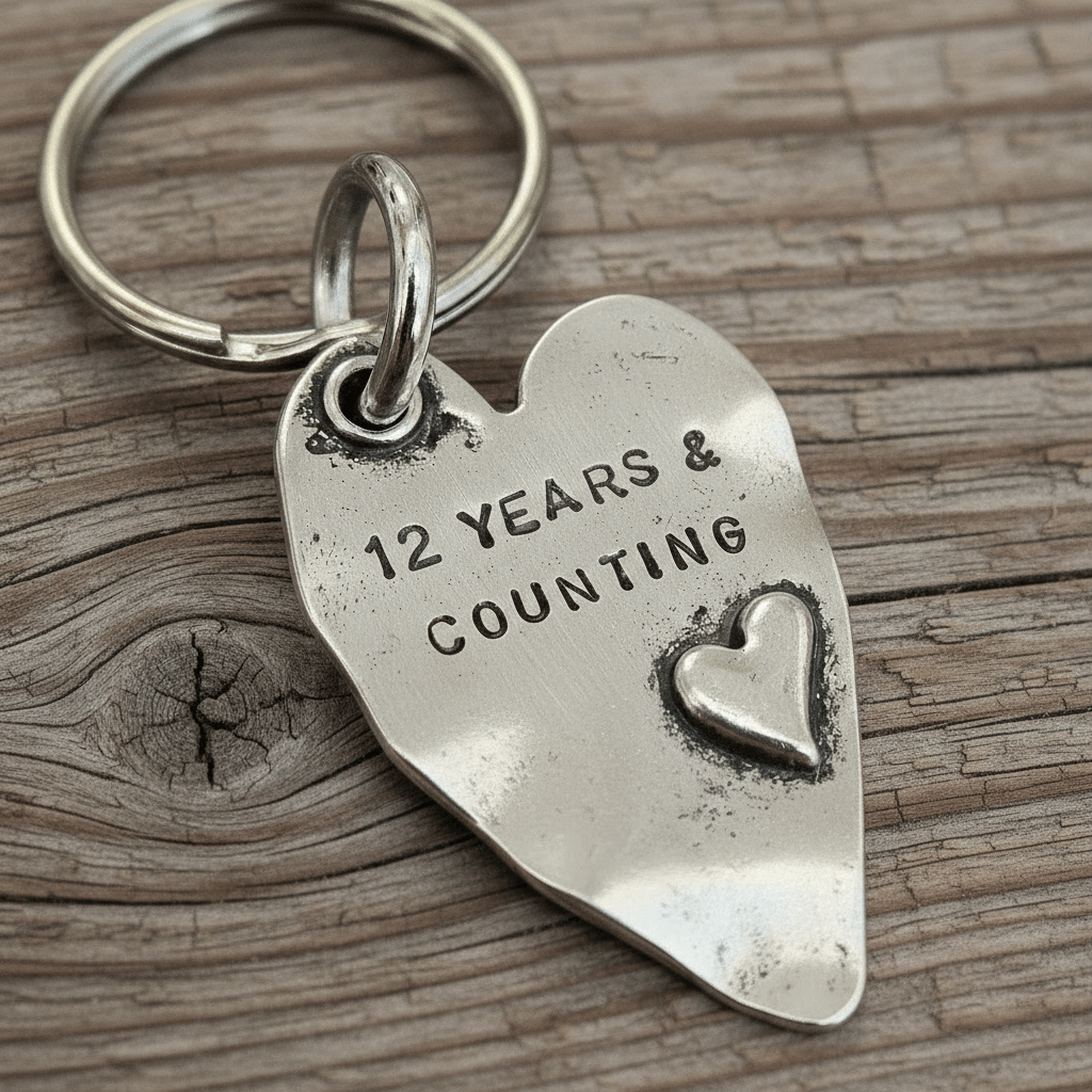 12 Years And Counting Heart Keyring 12th Anniversary Gifts Husband Wife Keychain