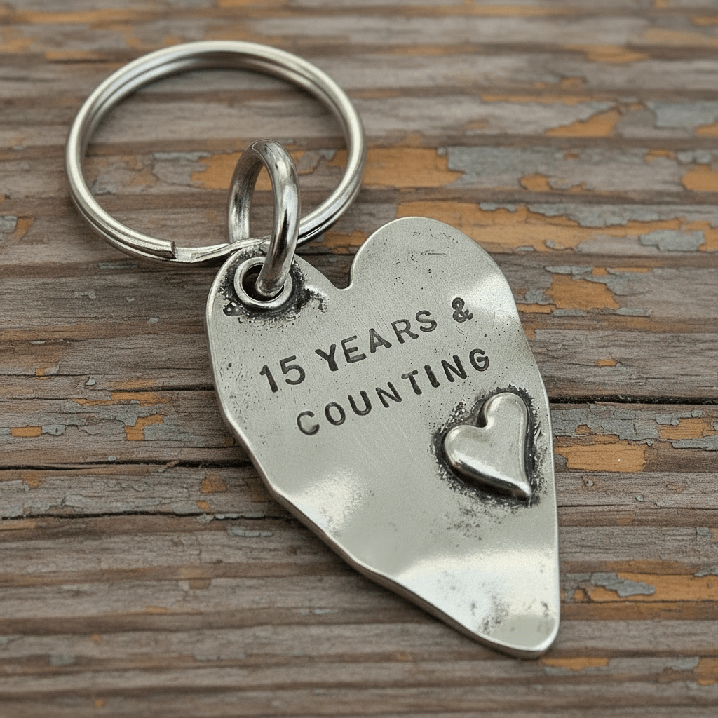 15 Years And Counting Heart Keyring 15th Anniversary Gifts Husband Wife Keychain