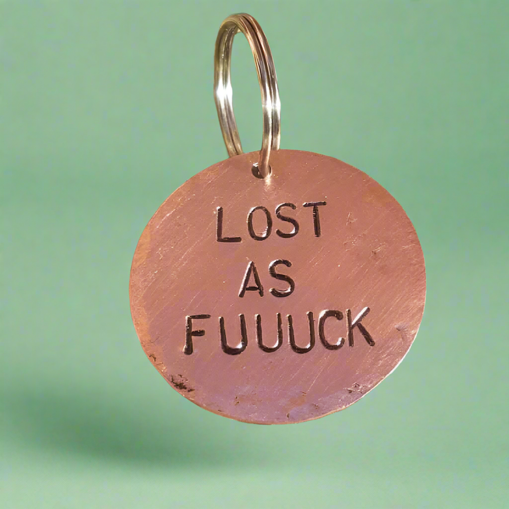 Lost As Fuck Funny Copper Dog Tag Personalised Pets ID Disc Charm NAME Number