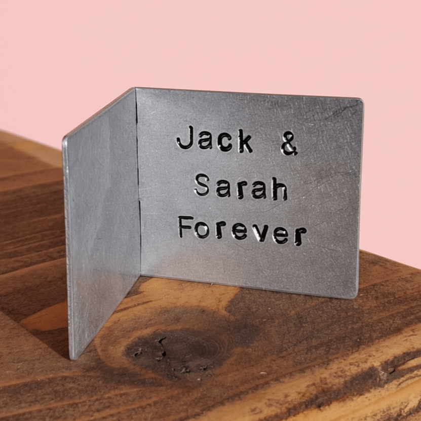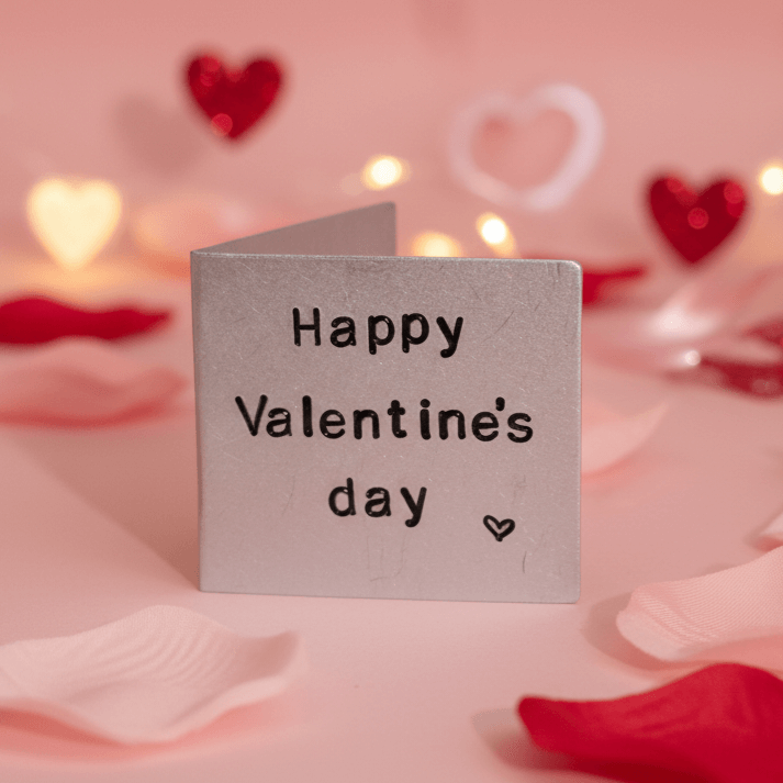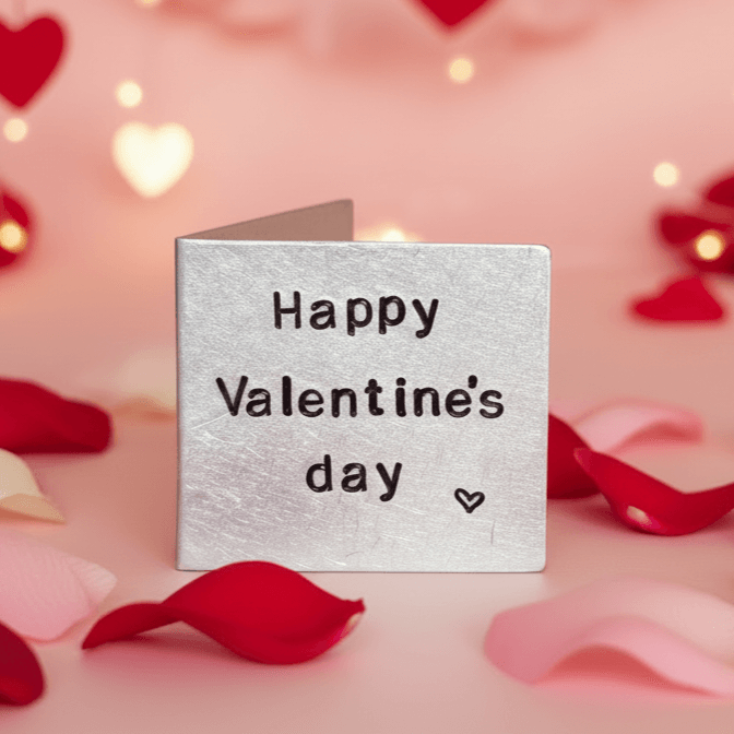 This handmade Valentine's Day Card is made from polished aluminium.