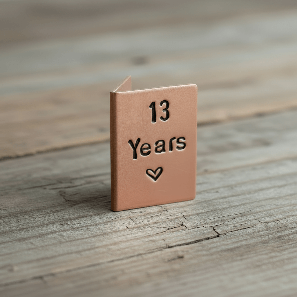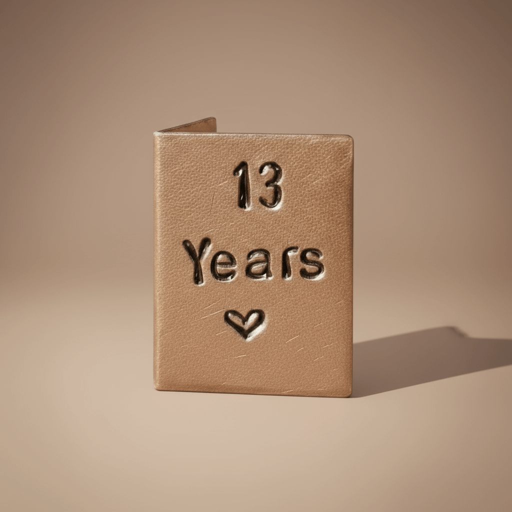 The front reads "13 YEARS" And inside we will stamp your special date. This could be your wedding date or your anniversary date, you choose.