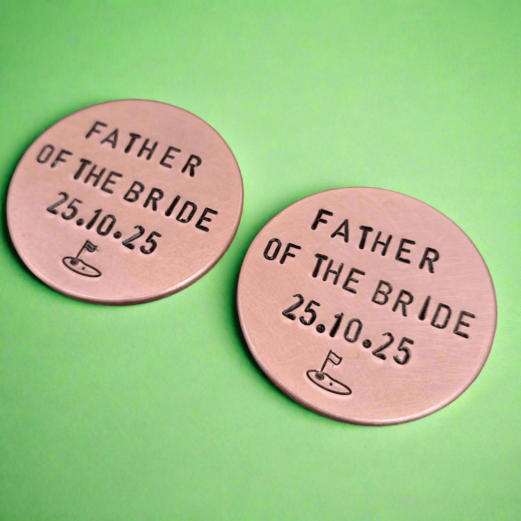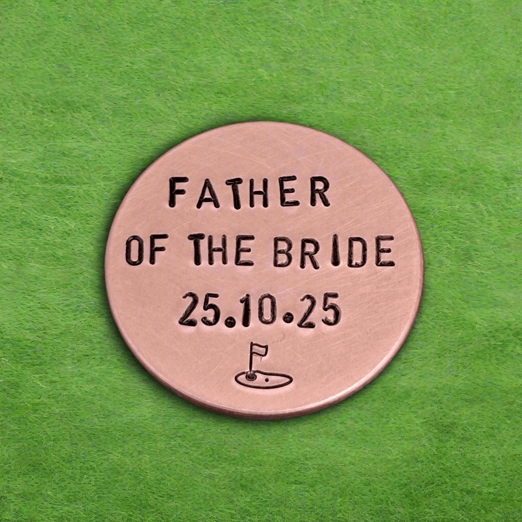 Father Of The Bride Personalised Copper Golf Ball Marker Gifts For Golfer Dad Wedding Day
