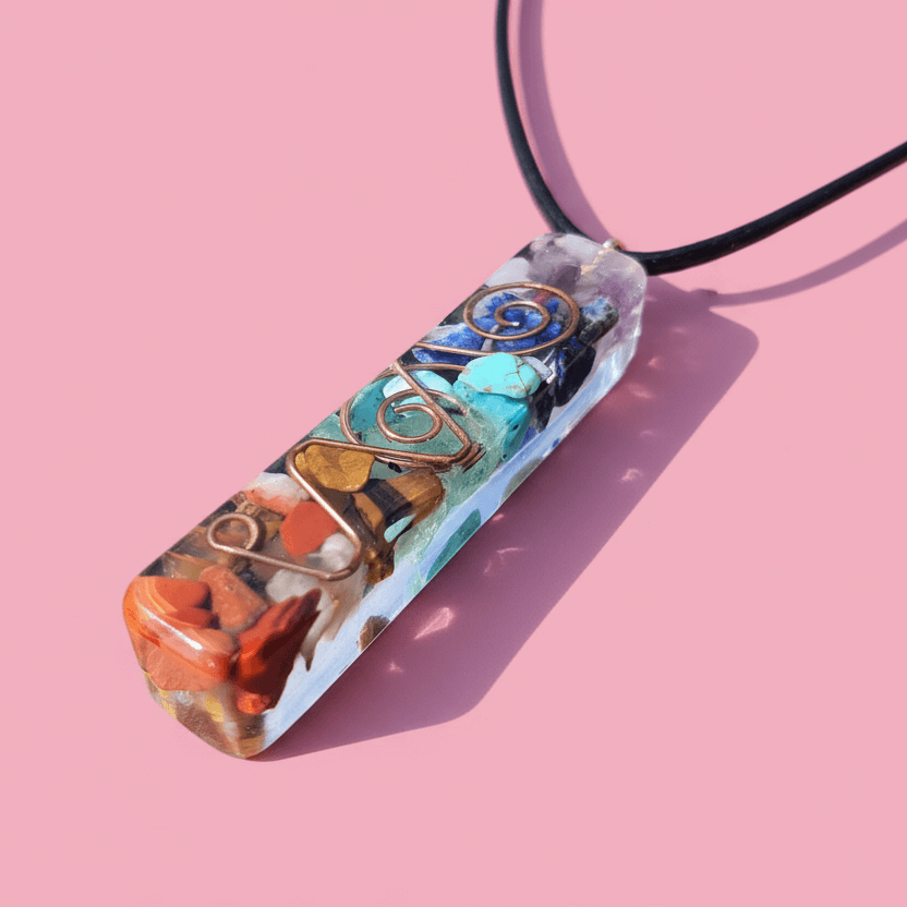 These beautiful pendants are handmade, each containing 7 colours of gemstones. Each gem representing one of the 7 chakras.