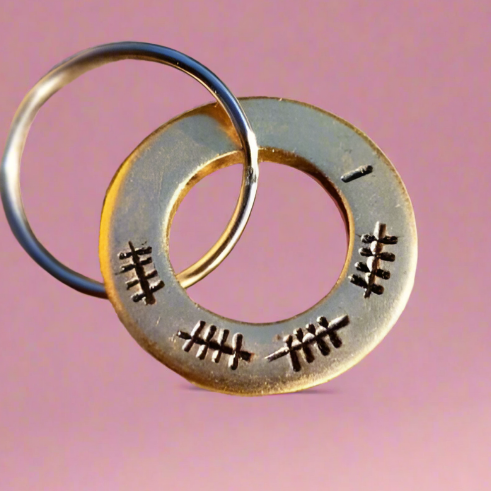 Give the traditional 21st wedding Anniversary Gift of BRASS with this cool hand stamped keyring.